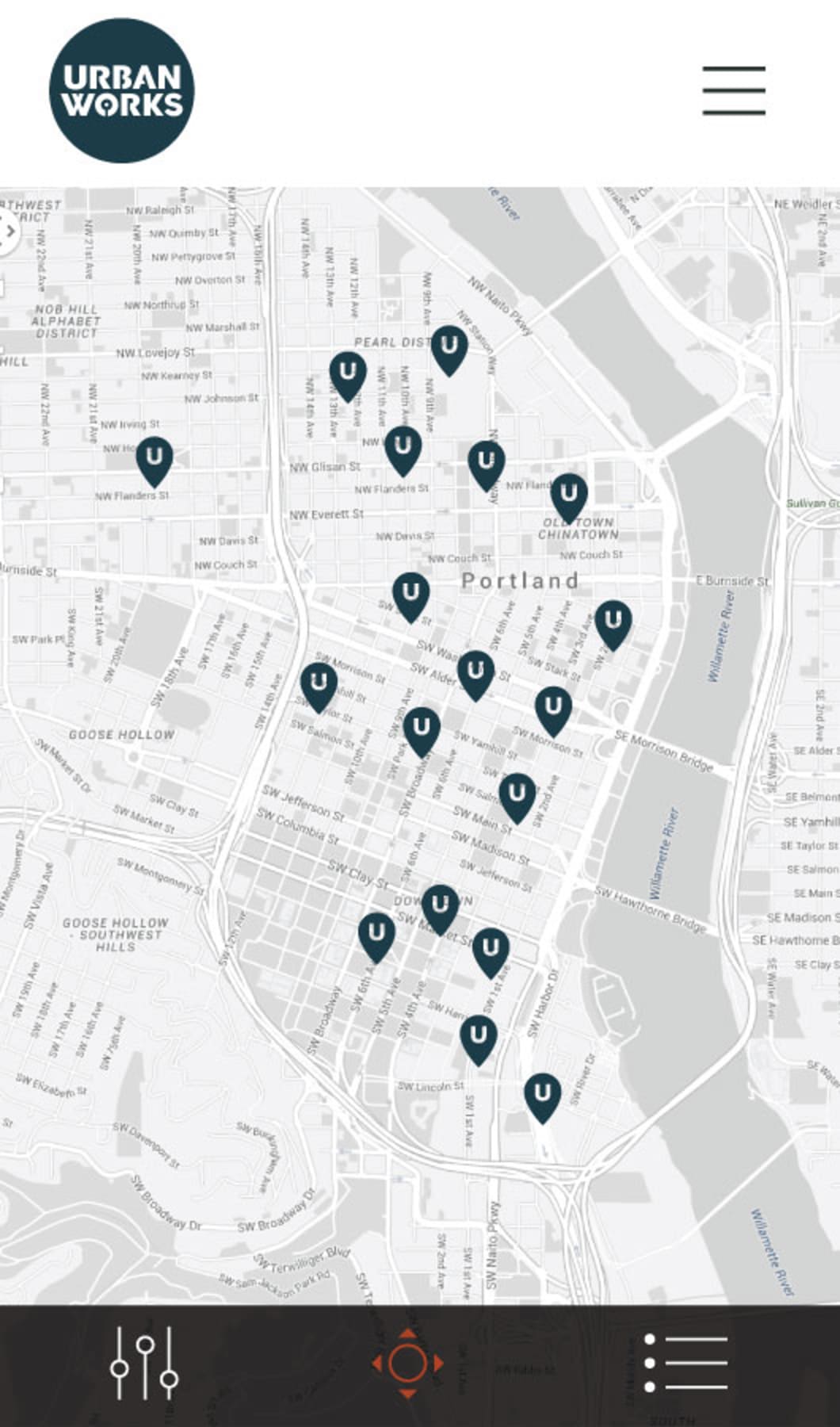 Urban Works also requested a property discovery feature that allowed users to view Urban Works properties based on various criteria. We developed our own custom solution using Google Map’s API.